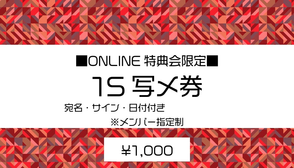 ※オンライン特典会中にチェキ写メのご準備をいたしますので、オンライン特典会終了後に期日までにお支払い頂けなくキャンセルとなった場合は、代金をお振込み又はライブ会場にてお支払い頂きます。(キャンセルの場合はオンライン特典会開始前にお問い合わせください。)